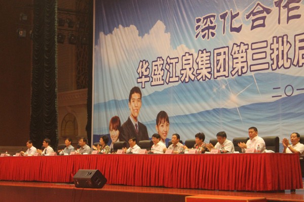 2013年6月7日華盛江泉集團(tuán)第三批后備人才培訓(xùn)班開班典禮在江泉城大酒店隆重舉行。華盛江泉城多功能廳人才薈萃,激情閃爍。出席開班典禮儀式的領(lǐng)導(dǎo)有:省人大教科文衛(wèi)委員會(huì)副主任委員朱紹陽(yáng),臨沂大學(xué)黨委書記丁鳳云,羅莊區(qū)委副書記、區(qū)長(zhǎng)趙曉輝,羅莊區(qū)委常委、副區(qū)長(zhǎng)張玉軍,羅莊區(qū)人大副主任趙日坤,臨沂大學(xué)商學(xué)院黨委書記曹光杰,院長(zhǎng)許汝貞,博士刁玉柱,沈泉莊社區(qū)黨委書記、居委會(huì)主任、華盛江泉集團(tuán)副董事長(zhǎng)王文濤,沈泉莊黨委副書記、華盛江泉集團(tuán)總經(jīng)理高洪路,沈泉莊黨委副書記、華盛江泉集團(tuán)副總經(jīng)理王廷寶以及集團(tuán)所有高管、各單位管理人員和后備人才等。同時(shí)邀請(qǐng)了臨沂日?qǐng)?bào)社、臨沂電視臺(tái)、臨沂大學(xué)及華盛江泉集團(tuán)有關(guān)新聞媒體對(duì)本次典禮進(jìn)行了實(shí)時(shí)報(bào)道。