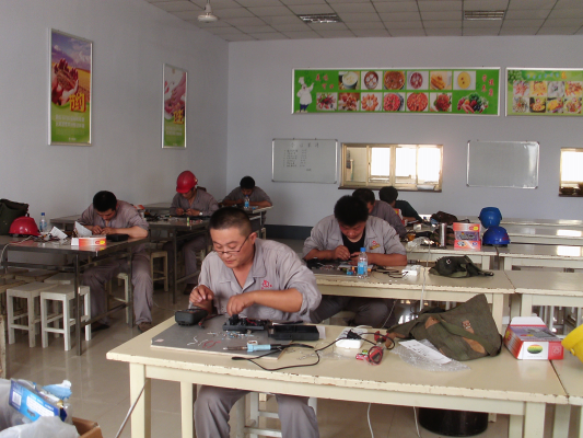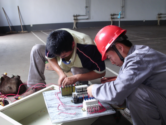維修電工的比賽分為登桿和配電盤制作兩個項目,登桿比賽在東方陶瓷舊址進行,參賽選手們腳踏著腳扣,腰上系著保險帶,在上蒸下煮的酷熱天氣里,他們迅速登上電線桿安裝瓷瓶,然后再快速回到地面,整個流程結(jié)束,他們的衣襟已經(jīng)濕透,在他們身上看到的的是嫻熟的操作速度和日積月累的操作水平。配電盤制作的比賽在華盛熱電娛樂室進行,參賽選手們爭分奪秒,他們忘記了天氣的溫度,每根線都被整整齊齊地接到各個電器元件和端子排上。比賽分為8組進行,兩人一組共同制作一個配電盤,選手們互相配合,互相借鑒,共同學習,把技術(shù)和經(jīng)驗融入集體,出色地完成了此次比賽。